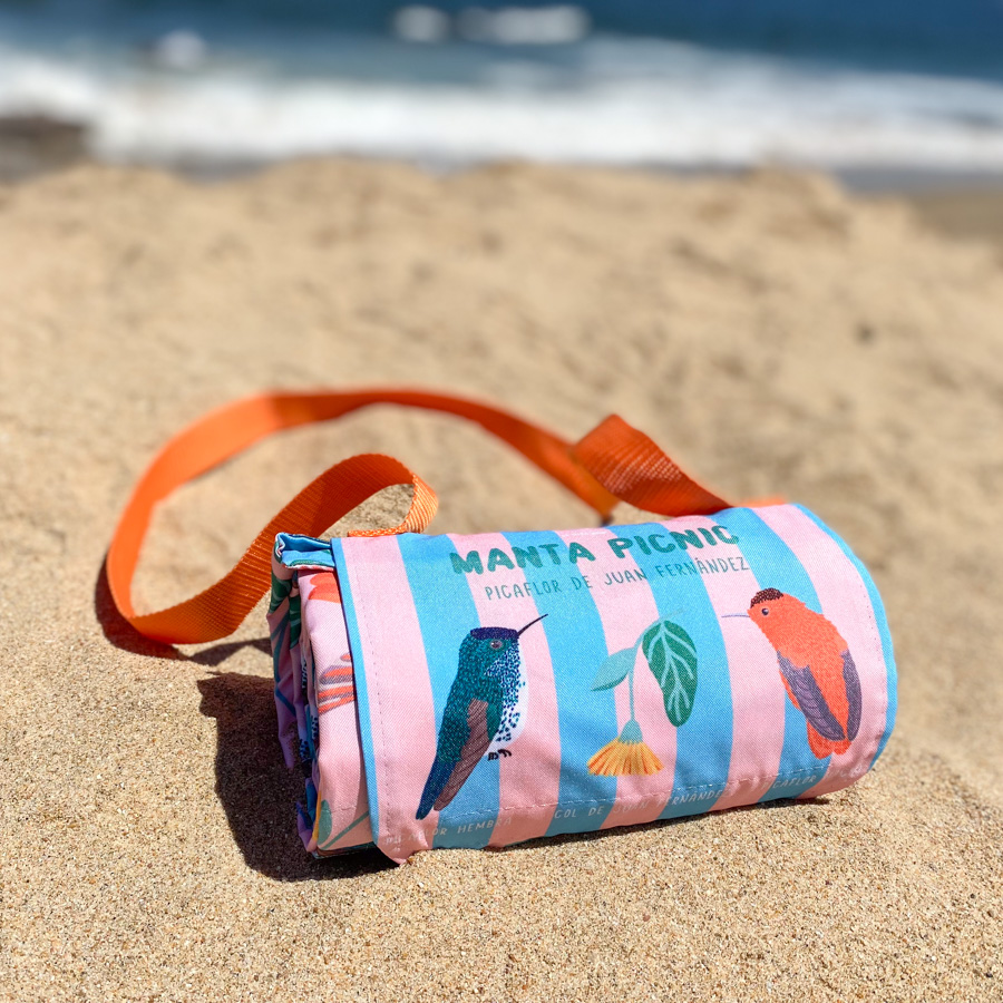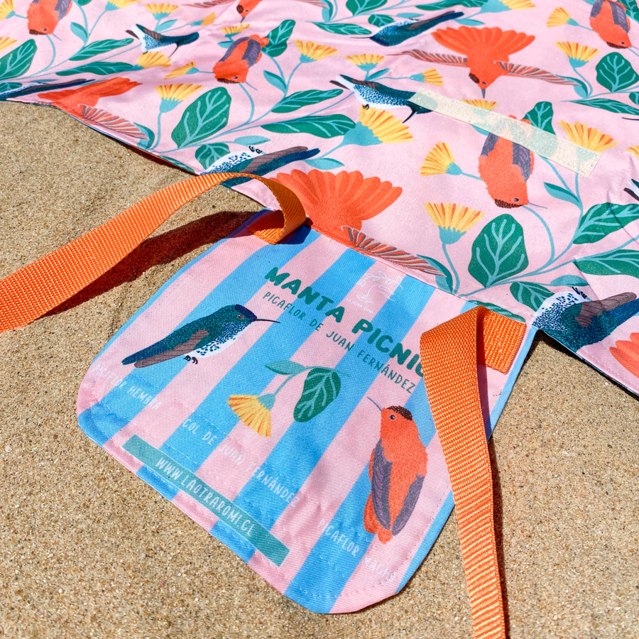 Manta de picnic reversible e impermeable, inspirada en el picaflor de Juan Fernández